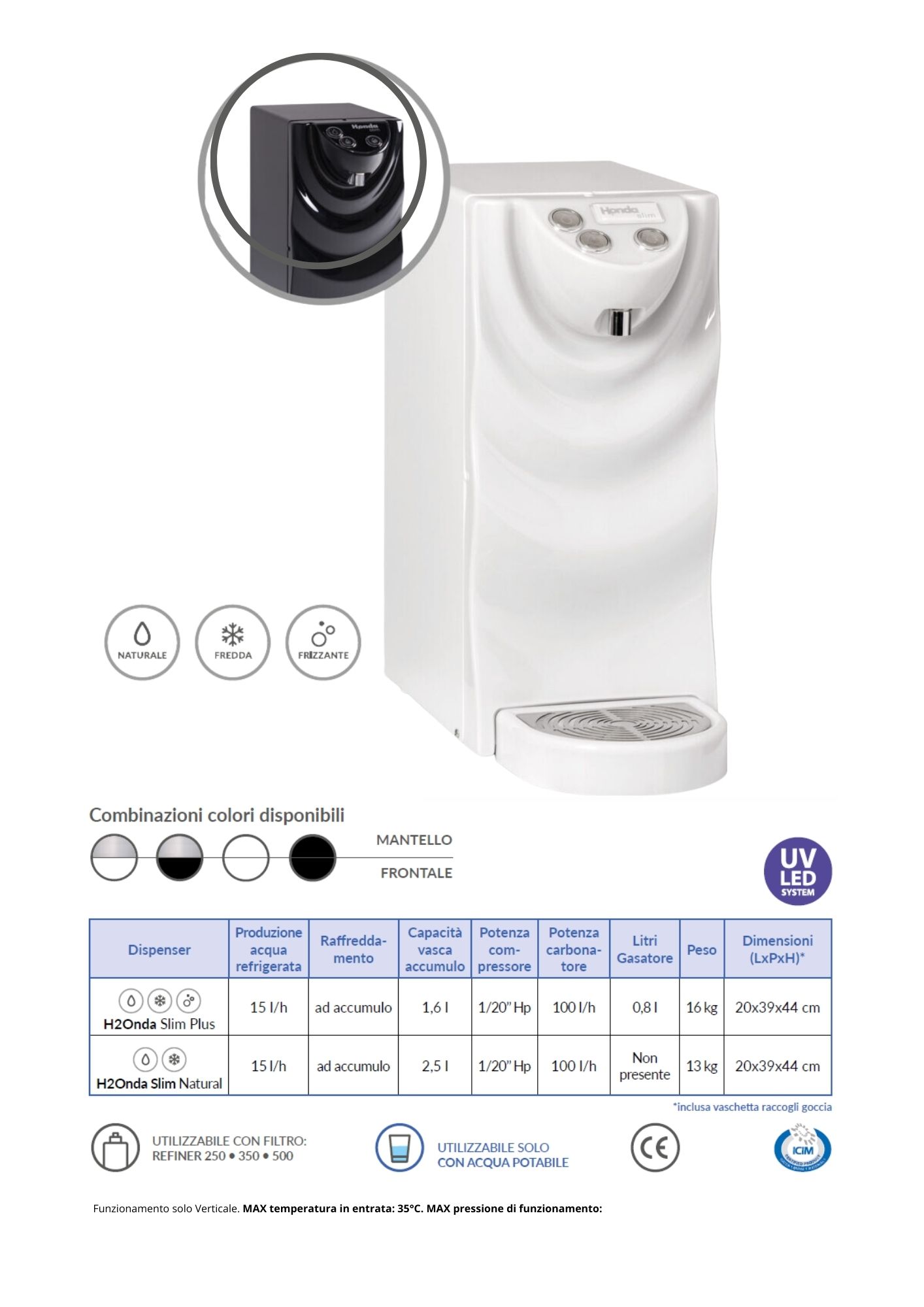 Dal connubio tra eleganza e qualità nasce H2Onda Slim, un dispenser dalle dimensioni ridotte e moderno design che si sposa alla perfezione con l’arredo di ogni casa.